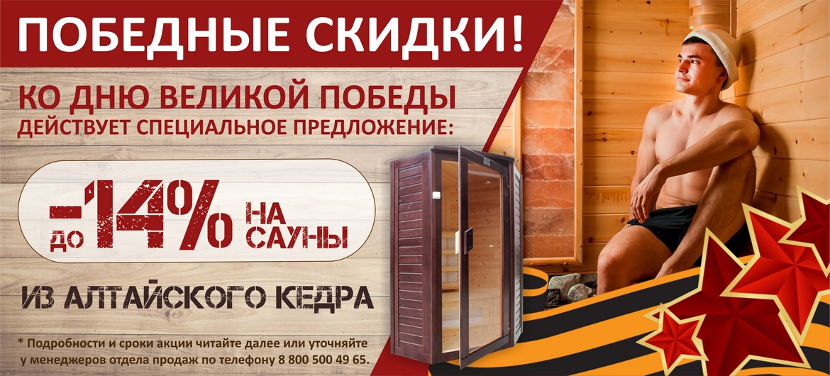 только сейчас Вы можете купить сауну* из Алтайского кедра по выгодной цене со скидкой до -14%!