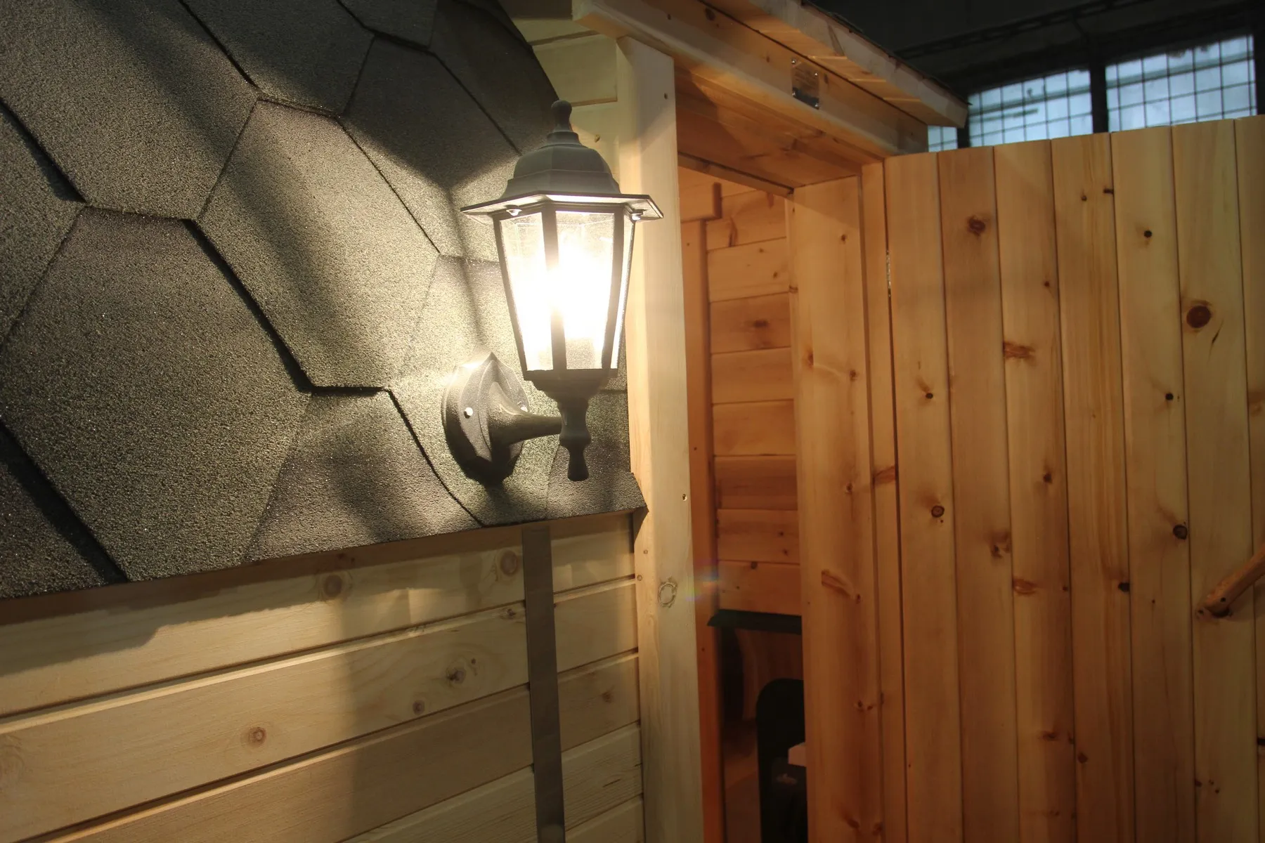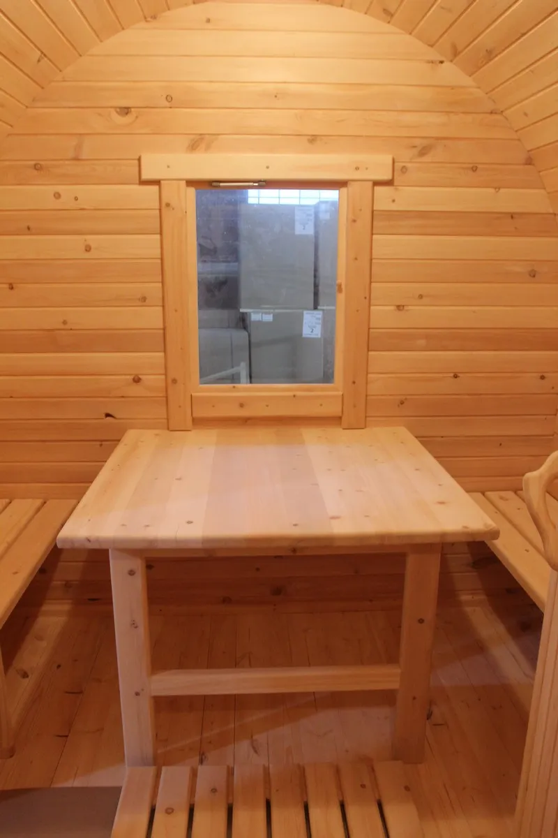 Домик с тремя помещениями подходит для дачного использования в теплое время года или обустройства загородных баз отдыха. Прихожая и кухня занимают одну комнату, в которой стоит стол из кедра. Две другие оборудованы четырьмя деревянными лежаками, по желанию их можно заменить на двуспальные кровати. Либо обустроить санузлом и душевой зоной. Для удобства пользования кемпинг дом можно укомплектовать верандой с лавочками или козырьком.