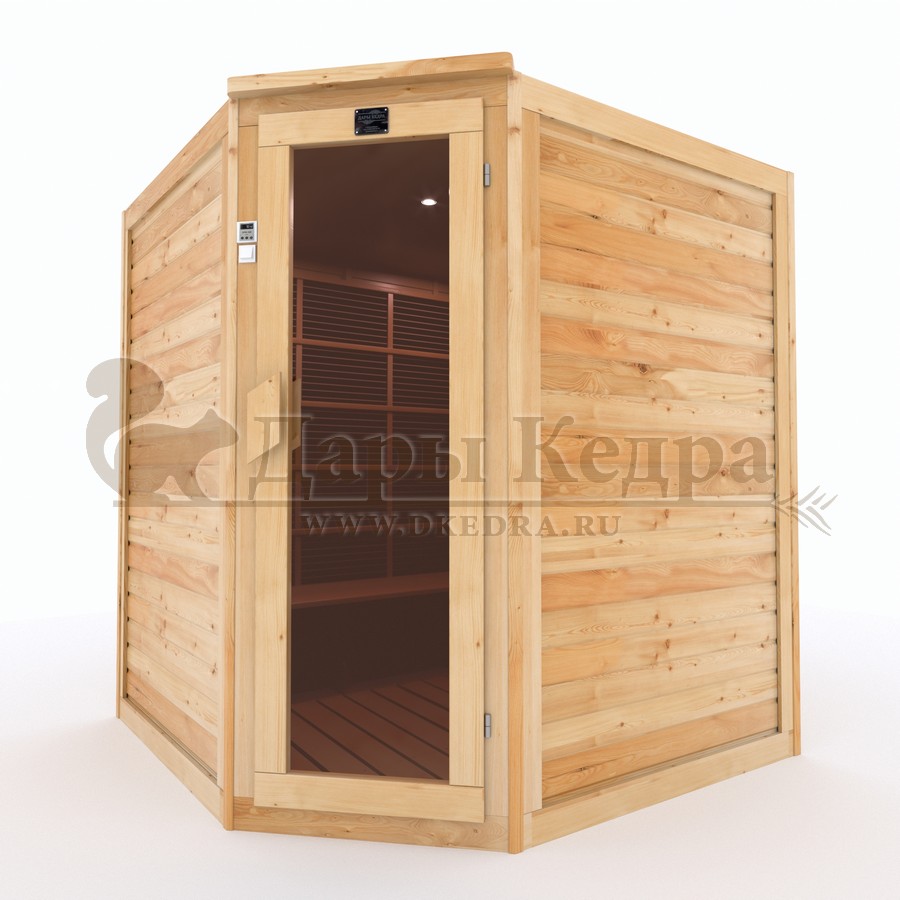 Двухместная угловая инфракрасная сауна кабина из кедра с карбоновыми излучателями Это специально оборудованная кедровая кабина для прогрева тела человека сухим теплом. Воздух в таких парных не нагревается. Инфракрасные лучи воздействуют на тело, равномерно прогревая мышцы, суставы и органы. Карбоновые излучатели, встроенные в стены кабины, обладают мягким прогревом, что полностью исключает возможность ожога. Работает кабина за счет электричества. Установка сауны в угол, позволяет рационально использовать пространство помещения. Подходит как для домашнего использования, так и для коммерции. Обращаем Ваше внимание что в стандартную комплектацию входит трапик для ног, но вы можете его заменить на цельный пол совершенно бесплатно! Целебная древесина кедра и инфракрасные лучи благотворно влияют на организм человека в целом. При регулярном использовании инфракрасной сауны укрепляется иммунитет, улучшается кровообращение и состояние кожи, выводятся токсины.