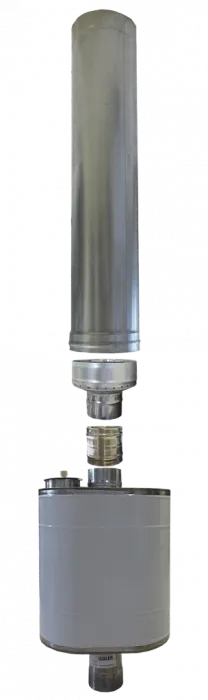 Также для комфортной эксплуатации парной из кедра предусмотрена в комплектации дровяная печь Термофор с трубой и дымоходом в сборе. Печь соединена с баком для горячей воды. Чтобы начать пользоваться баком с водой, необходимо дополнить его краном ¾. Труба устанавливается согласно инструкции от производителя печи, ниже показана последовательность установки трубы.