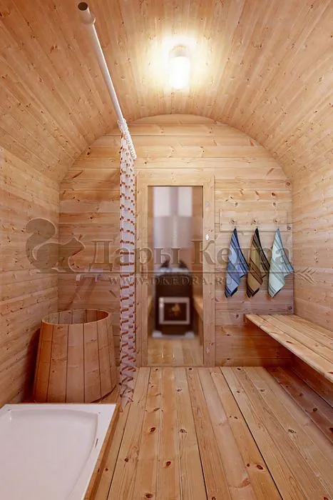 - Баня-бочка в виде буханки - это сочетание красоты и комфорта по доступной цене.