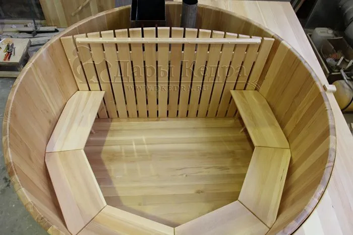 Пластиковая или композитная внутренняя вставка повышает долговечность изделия не в ущерб дизайну. Тело и вода с деревом не соприкасаются, но зато появляются значительные преимущества: вставка герметична, поэтому исключается протечка воды, её легче чистить. Композитная вставка в отличие от пластиковой выдерживает низкие температуры до -15С. На пластиковую вставку производитель дает гарантию выдержки до -5С.
