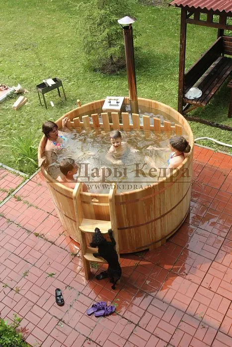 Купель из алтайского кедра укрепляет здоровье, повышает иммунитет благодаря фитонцидам, которые выделяются в воду и воздух. Неповторимый кедровый аромат вы будете ощущать на протяжении всей банной процедуры. Кедр — дерево твердой породы, не боится влаги, жучков, оно очень прочное, а значит устойчивое к условиям внешней агрессивной среды. Купель с дровяной печью подойдёт для дома и дачи. На открытом воздухе в любую погоду (даже зимой) она сохранит температуру воды теплой, комфортной для процедур благодаря дровяной печи.
